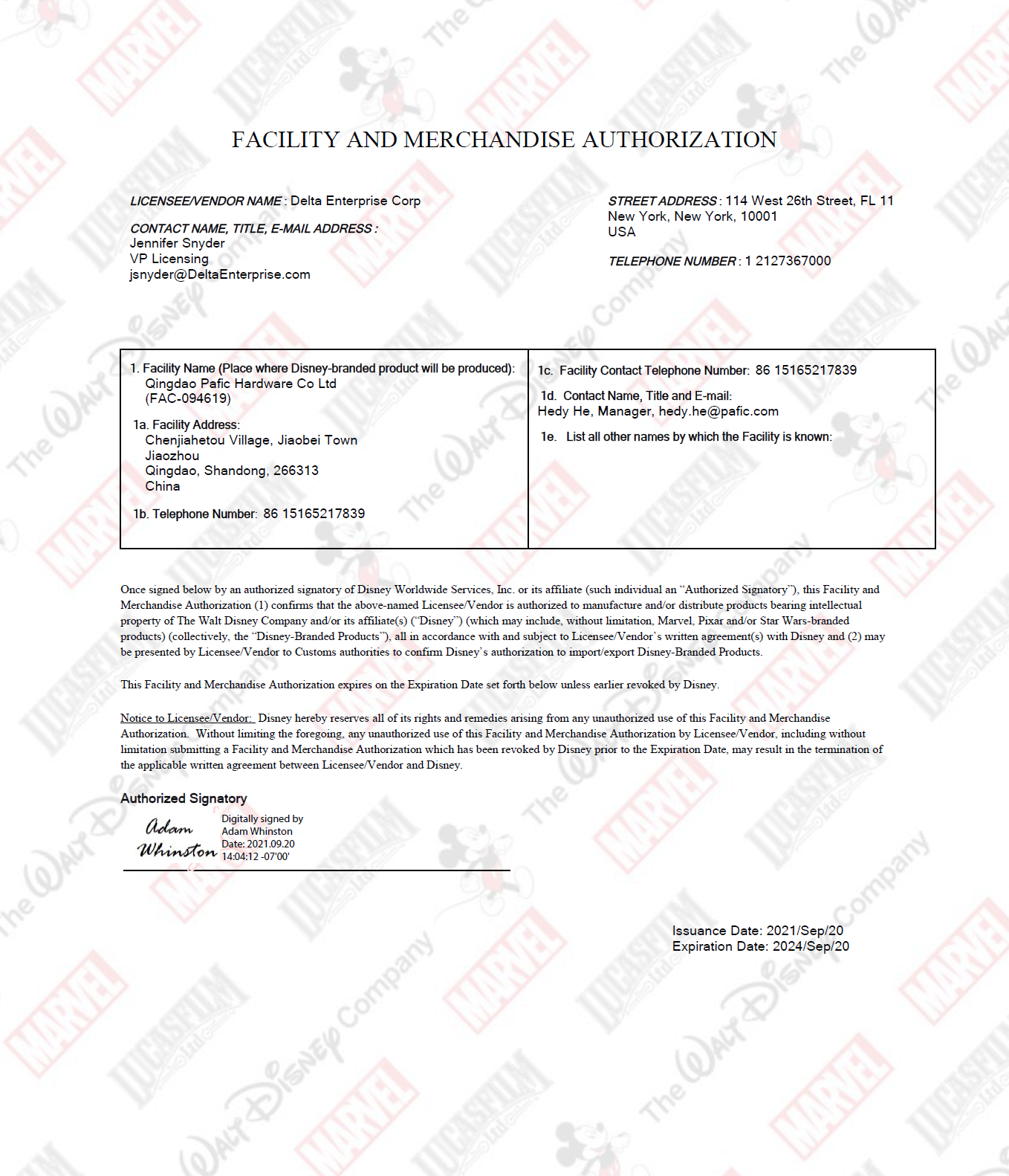 2021年,青岛公司机电科技发展有限公司取得了全球动漫品牌价值榜首Disney的秋千生产授权,让PAFIC这个中国制造的工厂品牌在世界范围内被更加广泛地认可。